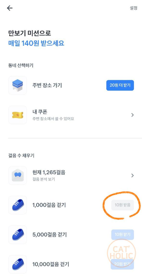 도합 40원이니까 5000보만 걸어도 20원 적립 가능!