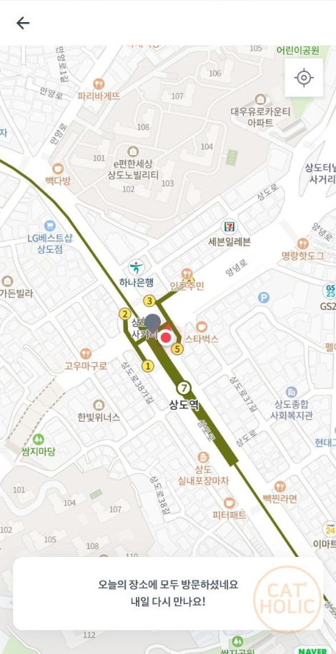 3) 사당역처럼 큰 번화가는 지하철 역만 돌아도 60원이 적립된다.
