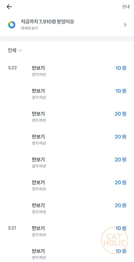 이게 만보기로 받은 금액.