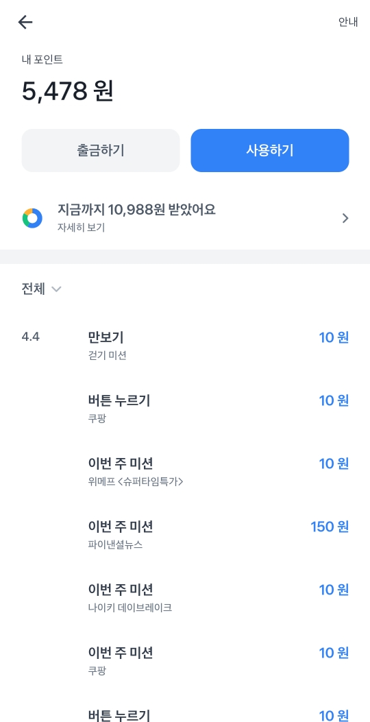언제 다 모으나 했는데 안쓰고 모으니까 그래도 5천원 남짓 벌었다.