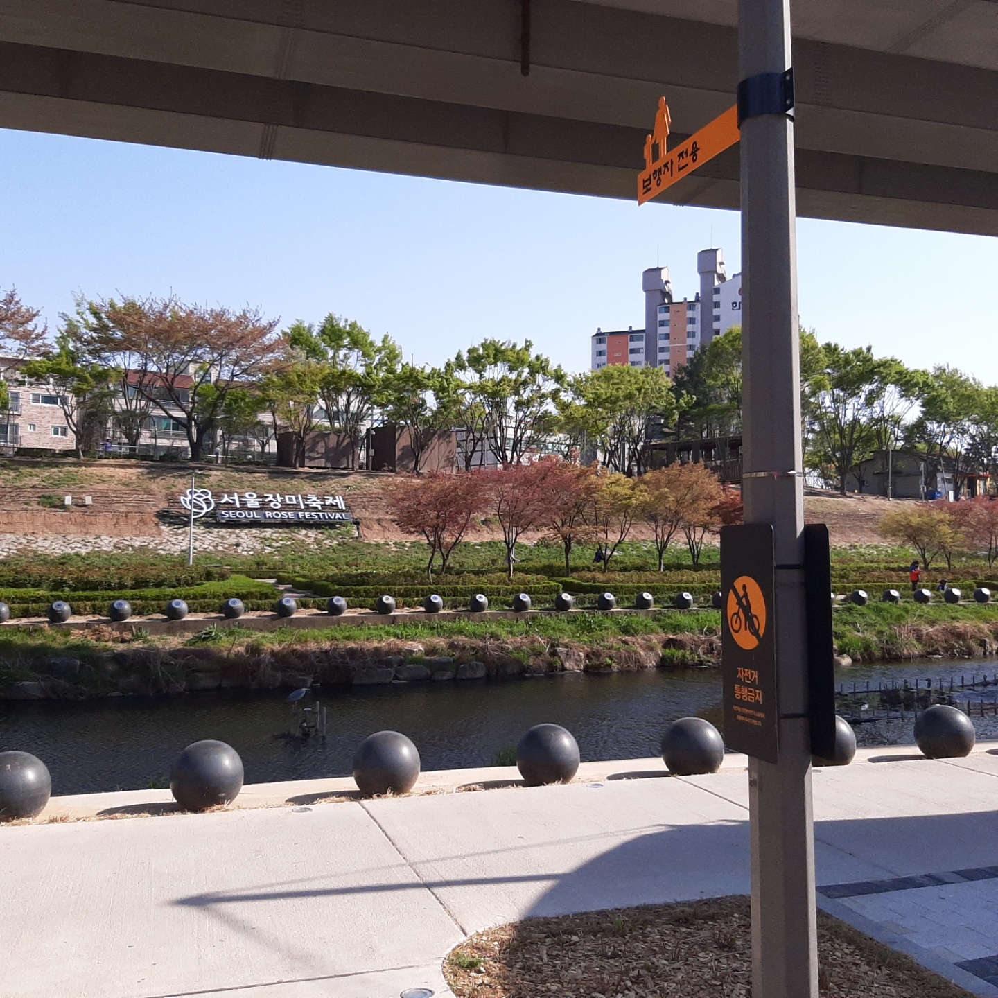 중랑천까지 가기전 묵동천과 중란천 사이에 장미공원이 있는데