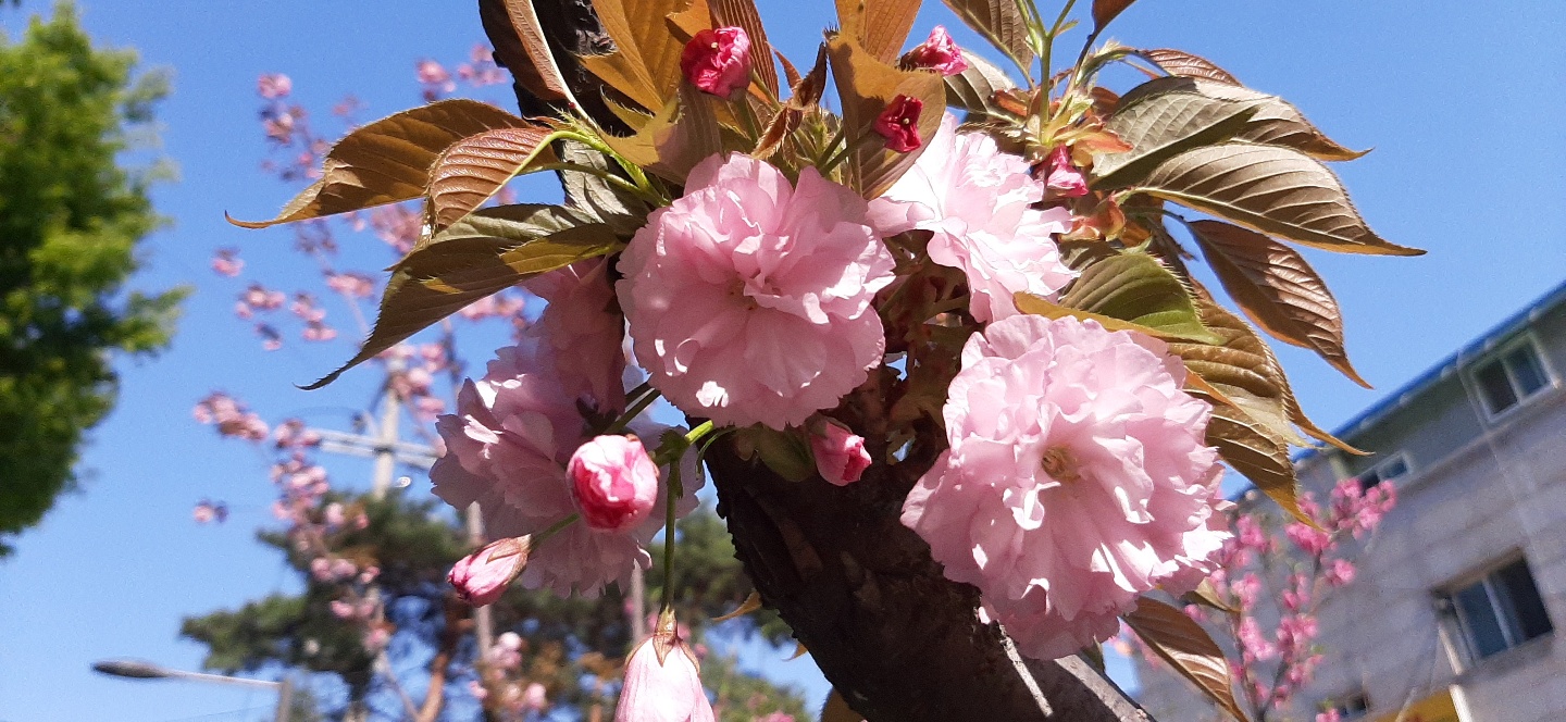 장미공원 윗쪽에는 이렇게 겹벚꽃이 슬슬 피기 시작했다.
