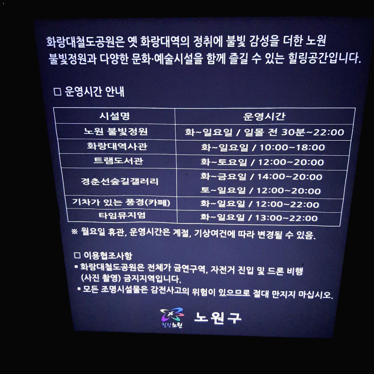 불빛정원 : 화-일 일몰전 30분부터 22:00까지