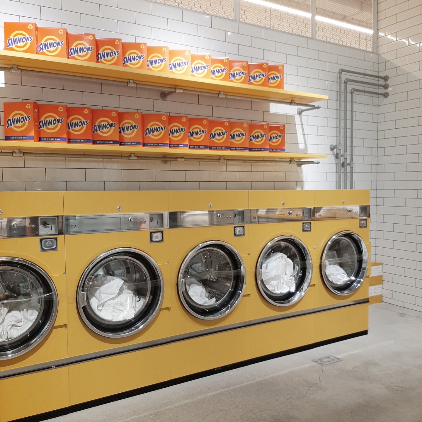노란 세탁기 앞에서도 사진을 많이 찍는 모양.