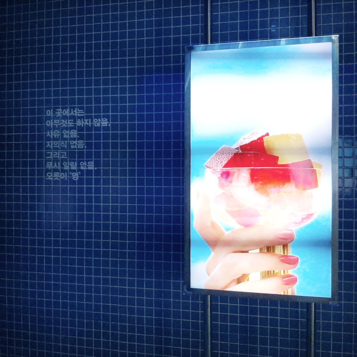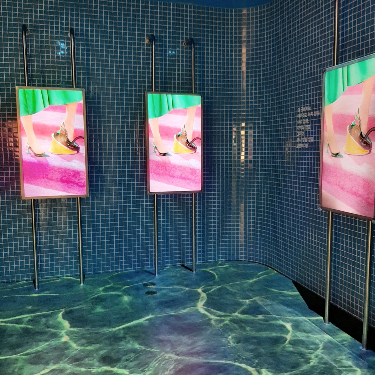 이 타일방에서는 끊임없이 찰랑이는 물결영상이 바닥에 플레이되고,