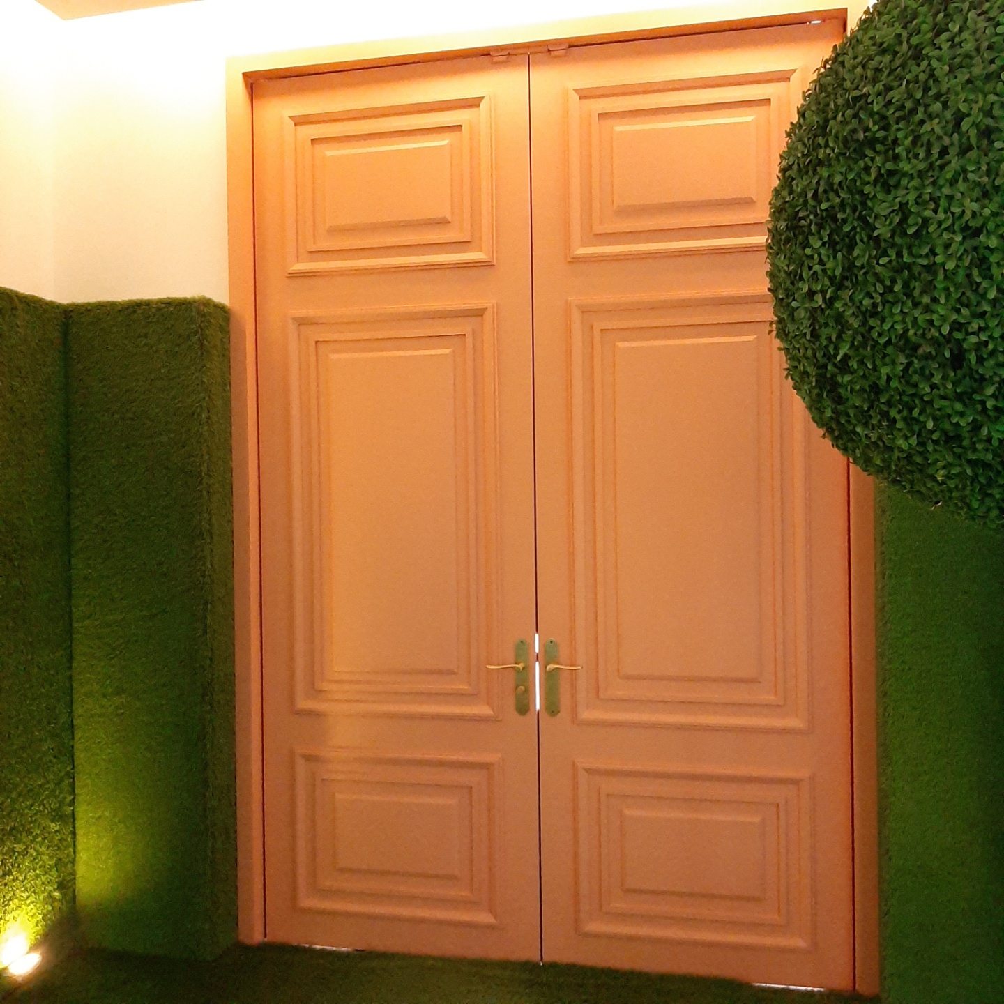 분홍색 문은 잔디밭 방의 오른쪽 끝에 있는데,