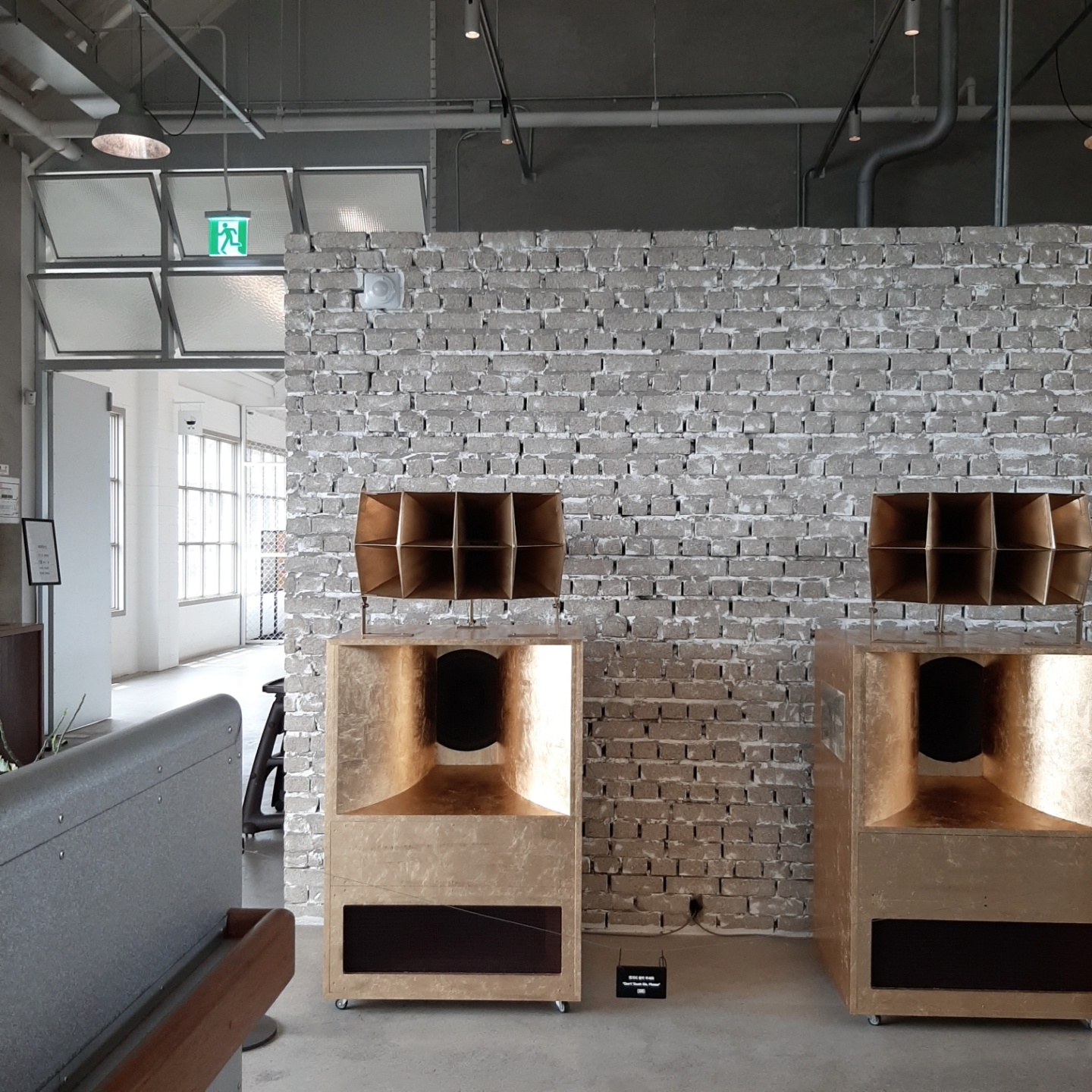 황금빛 스피커 옆으로 죽- 가면 시몬스테라스 2층 전시관이 나온다.