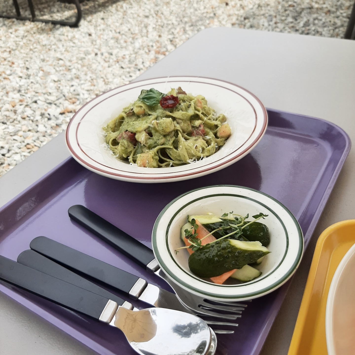 면은 씹는 맛이 있게 쫄깃하고, 바질페스토도 담백하고, 은은한 바질과 올리브 향이 너무 잘어울림.