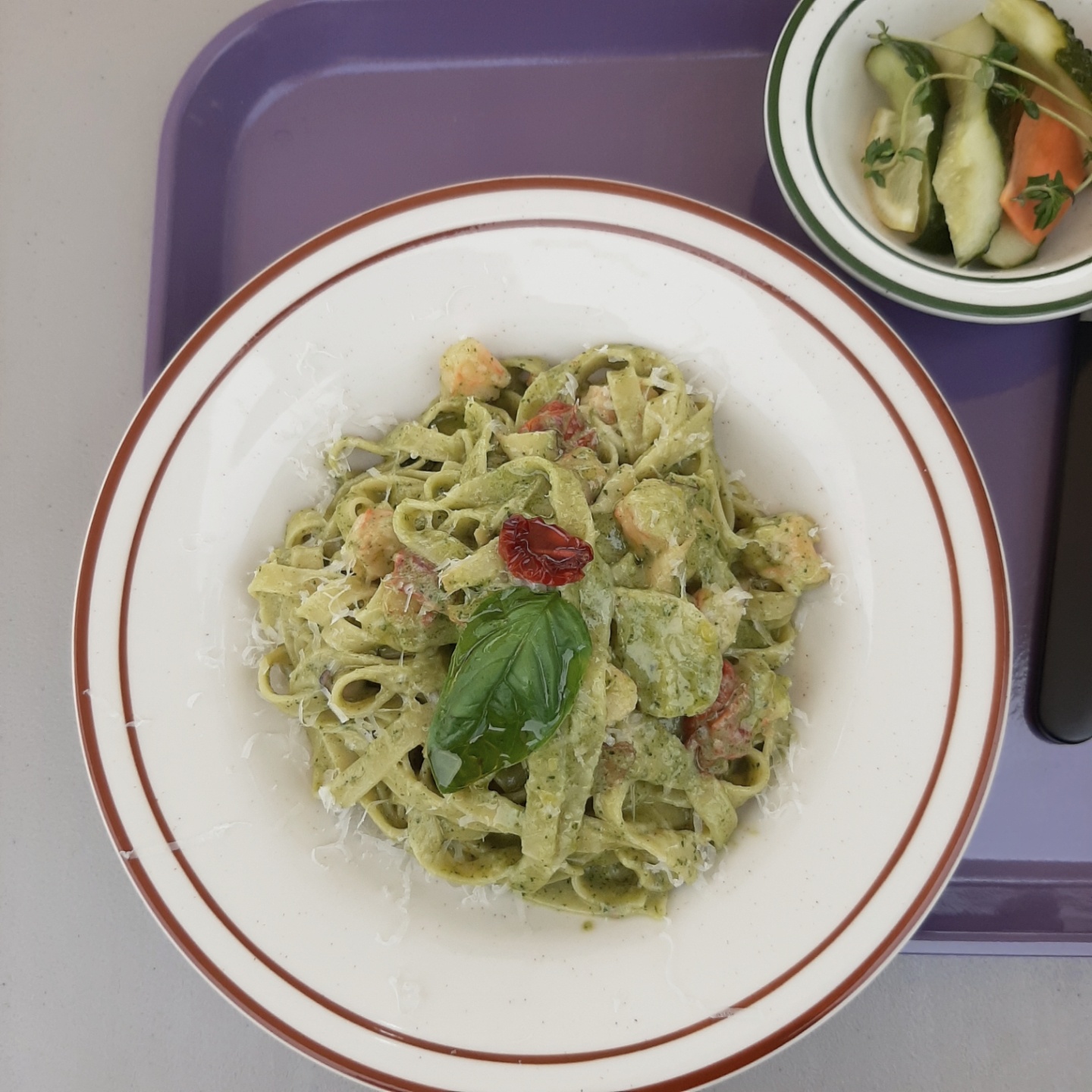 탈리아텔레인듯 넓고 납작한 면과 바질페스토가 듬뿍.