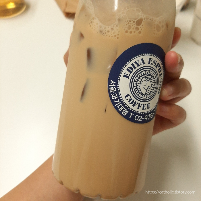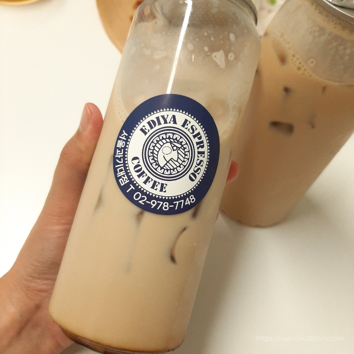 이디야 흑당라떼, 연유라떼, 생크림 와플.